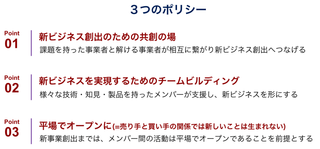 My-IoTコンソーシアムの活動ポリシーは以下の3つです。